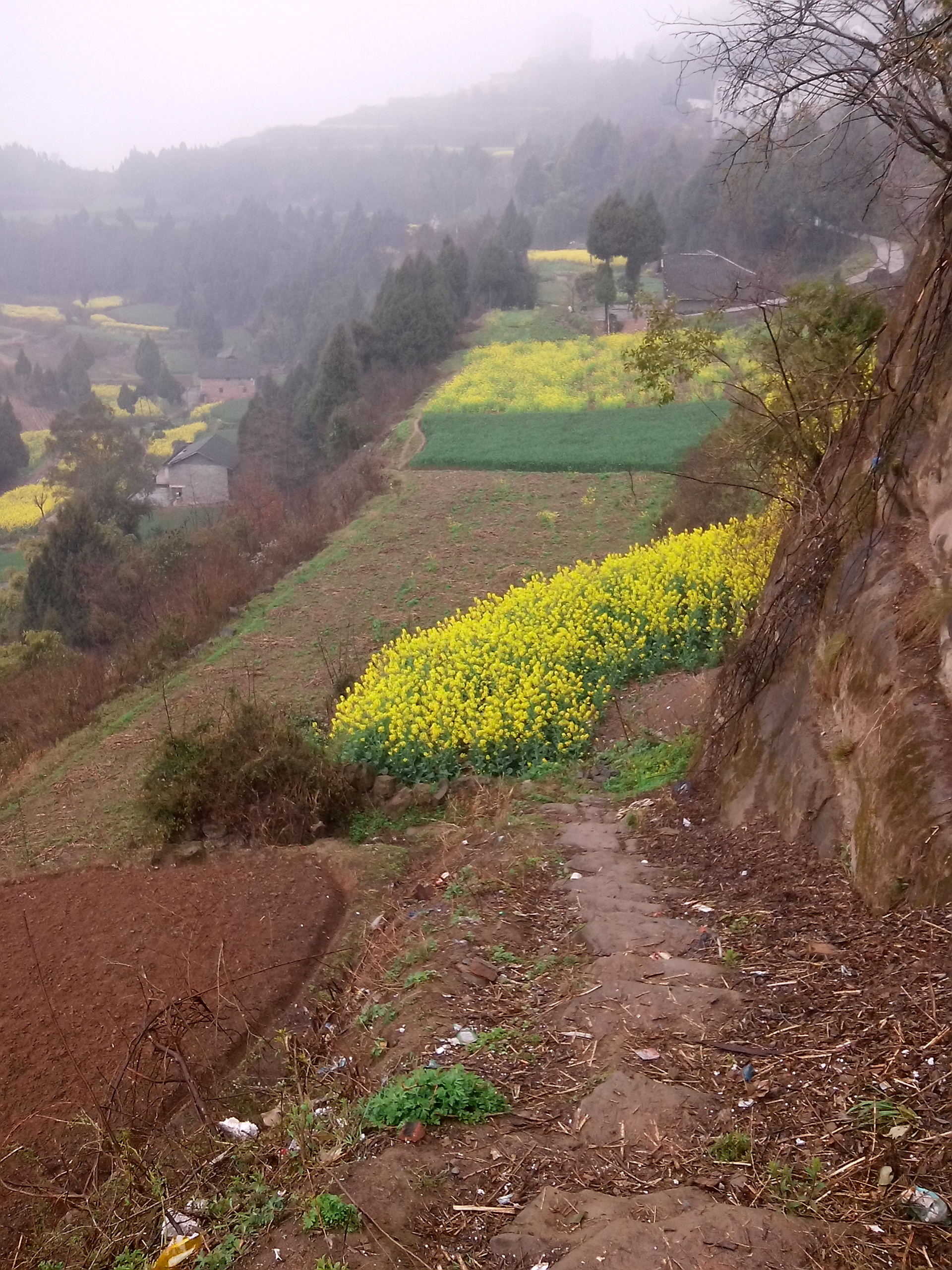 到了油菜花开的季节,每次回家的路上一片片一层层黄黄的油菜花好似黄彩带绕在山间。从远处看那一片片梯田分布在田野间,为春天抹了一层亮色。