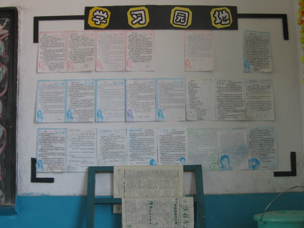 后黑板的俩侧是我们的学习园地,墙上贴着同学们酸甜苦辣的心声,和学校给我们的学习报。它的建立使我们时时刻刻都能吐出自己的心事,也让我们学会学习。