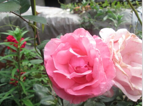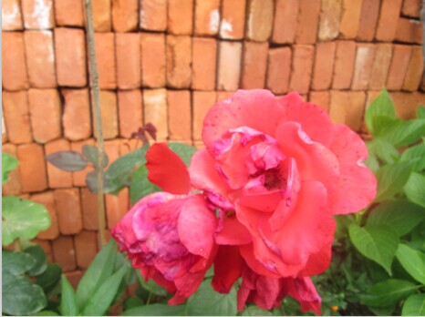 中午,在烈日炎炎之下,玫瑰花依旧方向。花瓣儿好像觉得太热了,他们层层卷了起来。虽说,没有早上那么耀眼,但却不失玫瑰本色,被烈日蒸发的浓香还是隐隐迎面而来。