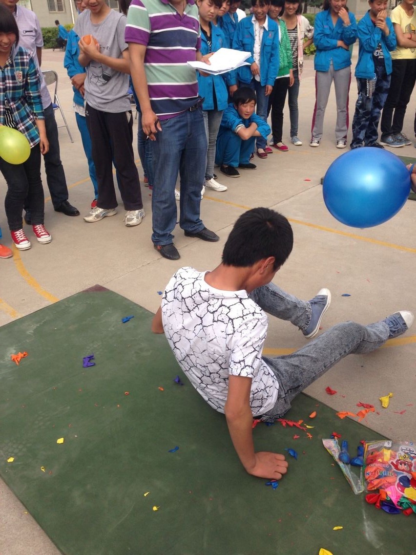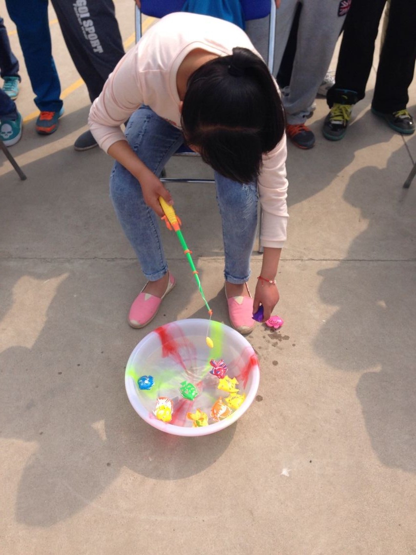 下午学校组织了师生趣味运动会,有三人两足跑、钓鱼比赛、压气球比赛,同学们个个玩的脸上笑开了花。