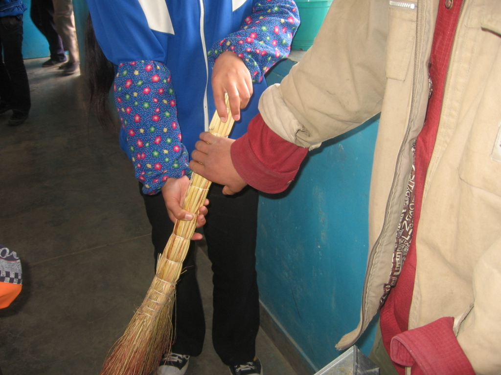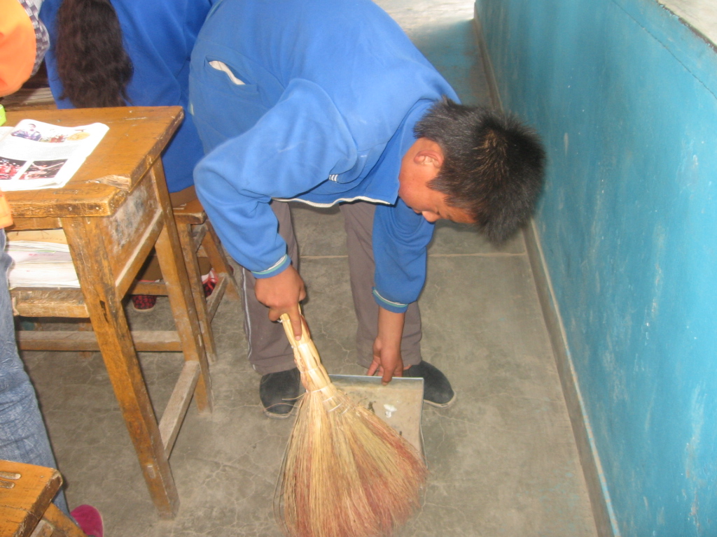 他很快地把糖渣扫完了,同学们也为他热烈地鼓掌了。