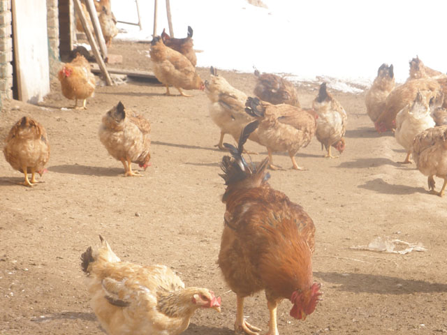 小叔先带我去了养鸡的场地,这个场地很大,但里面的鸡只有三四十只,大约十只打公鸡在比赛谁的嗓门大,他们一个个昂首挺胸,放开了嗓子叫,这声音吵得我都快聋了。我赶紧离开了养鸡的场地,接着带我去了鸡生蛋的地方,这个地方已经被彩钢板封住了,所以我看不见鸡在哪儿,最后还有一个冷库专门是放鸡肉的地方,但是里面什么都看不见,而且还特别冷,我就赶紧跑了出来。