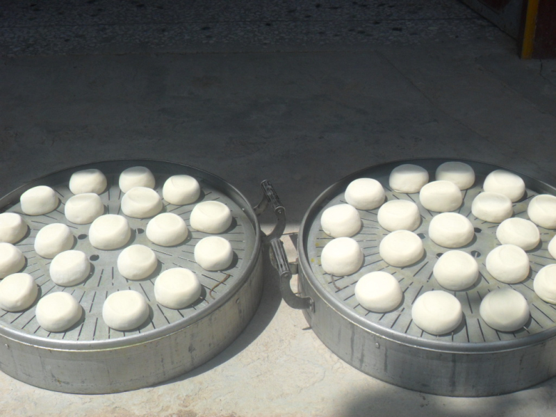 放到笼子上之后,把它们拿到太阳底下,接受足够的日照,太阳光使它发酵,让酵母在馒头里紧紧的融合,在太阳的照射下,它们晒的暖暖的,身体也逐渐的膨胀起来。等膨胀到一定程度时,就不会发生太大的变化了。