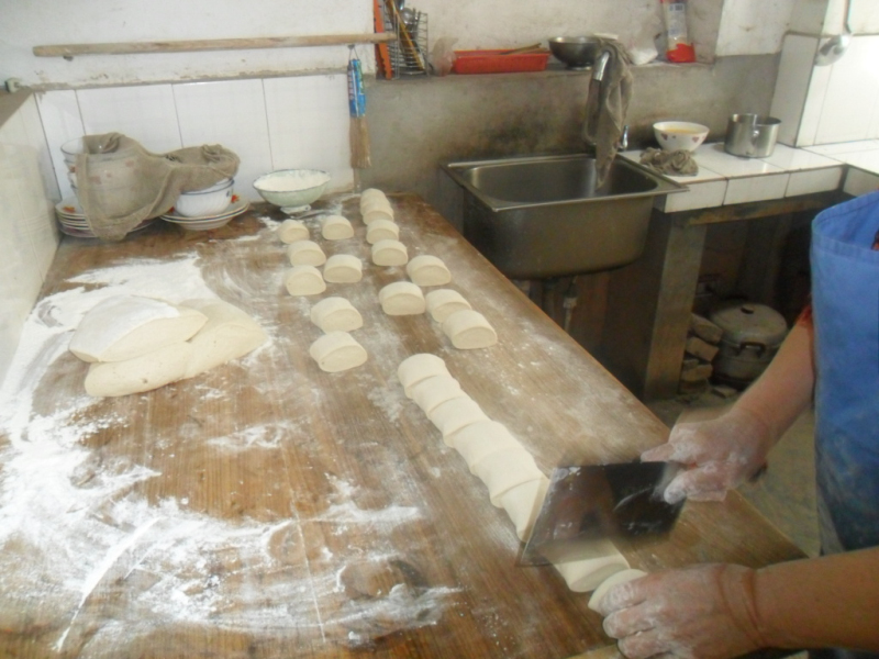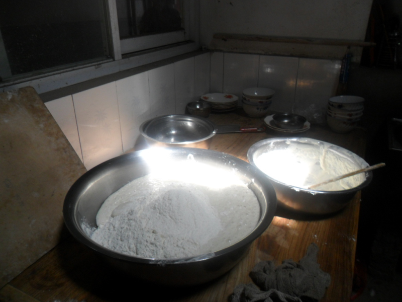 这是蒸馍的第一个步骤,先按比例调配好水和面粉,把它们结合在一起做成面,不断地揉搓,使它们紧紧的融合,让它们相互侵蚀,用人力让它们在一起结合,它们融合得越紧,做出来的馒头就越好吃。