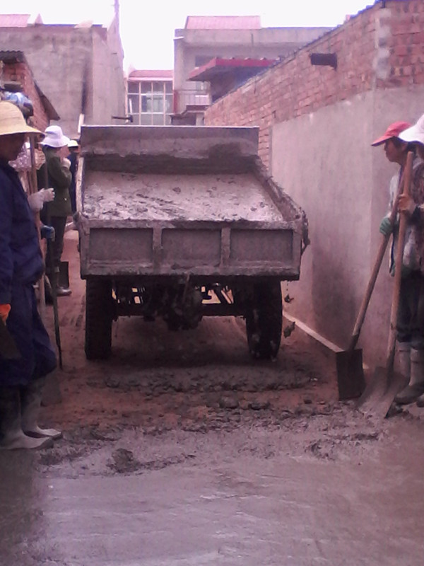 昨天,一群人来到这条巷子,叫爸爸说要打成水泥的,我高兴得一蹦三丈高,终于再也不用泥泞了。工人叔叔用他们的三马车从固定的地方拉来混凝土,然后倒到我家的巷子里。然后,几个叔叔阿姨,拿着铁锹,像几只大型动物瓜分猎物一样,两三下就把小山丘似的混凝土给铲平了。然后又有一个叔叔先大概推平,然后,又有两个叔叔拿着磨片往光滑里收,叠叠重重,此起彼伏,好有层次感呢。大概用了二十车混凝土才把这五十米长的小巷给制服了。平平的,光光的,当然我想到以后下雨,上下学就不用愁了,心里都是美滋滋的。