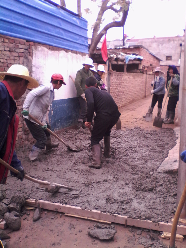 接着,便是漫长的等待。因为它一下子还凝固不了,我们家还好,小爷家才惨,他们出不了门,犹如海上的孤岛,望着这可望不可行的小路,但想到以后的美好日子,就都忍了。为了这历史性的一刻,我背着他们偷偷在上面写了2014 年 4 月20 日建。我和它,一起成长。
