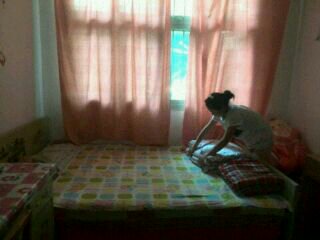 我想先从哪开始?我一看从床上乱七八糟,就想从床上开始。先把被子一叠,然后把床单和枕头放整齐。床上收拾好了。我看见地很脏就很小心地扫了一遍,一点也不敢马虎。