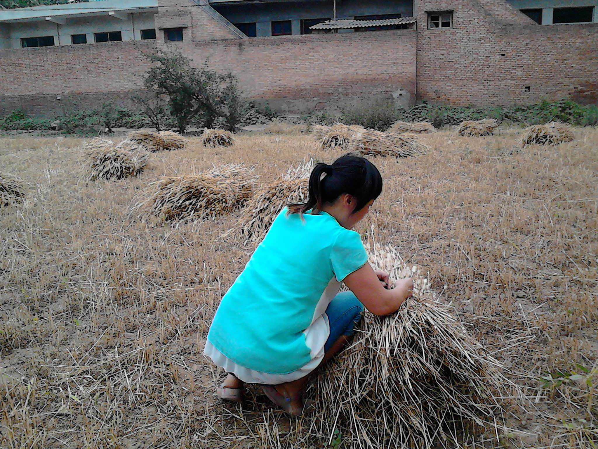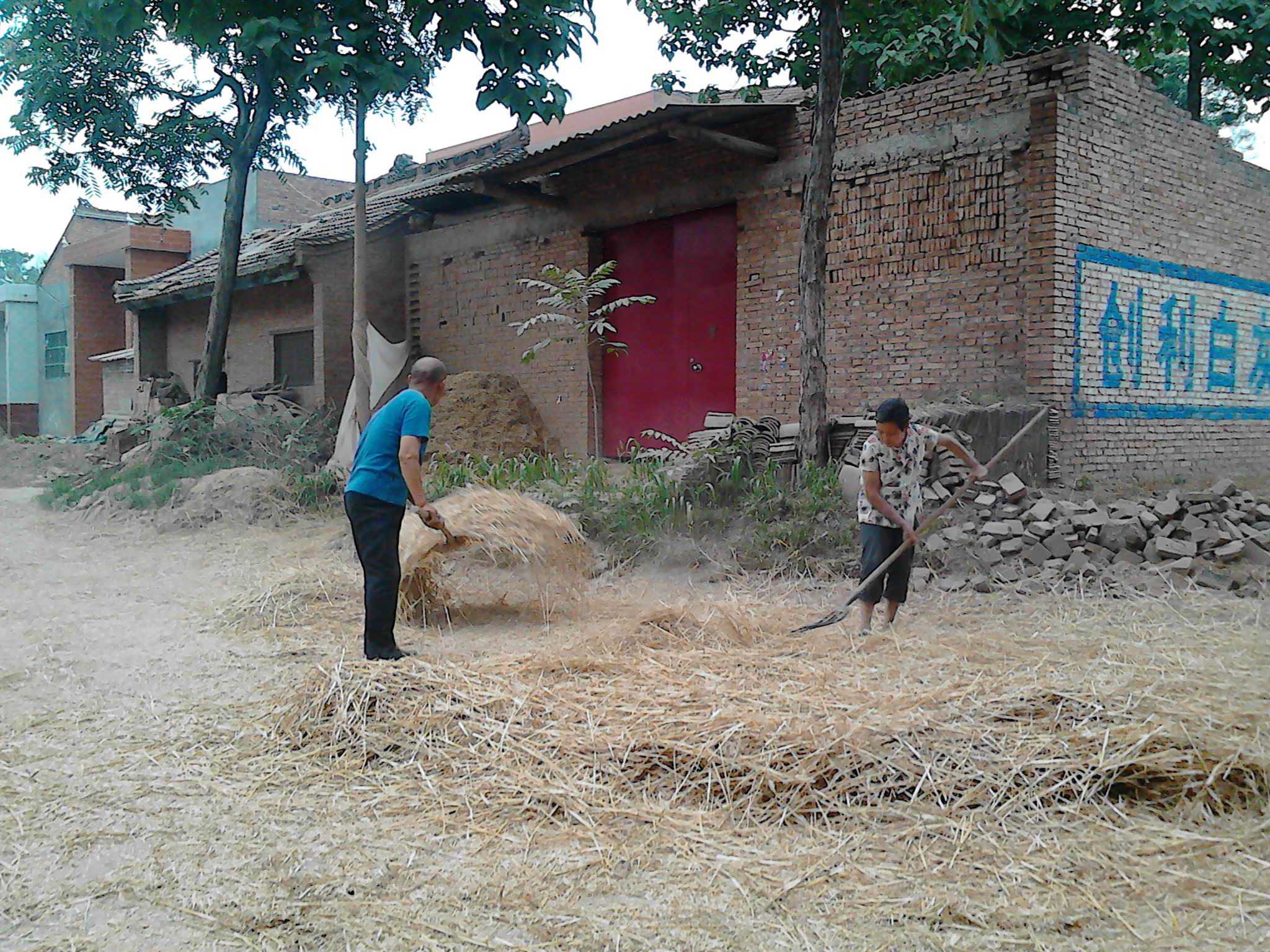 麦子收割完毕,人们就把粮食晒干,再储蓄起来,并把麦秆晒在马路上,汽车来回穿梭,把麦秆辗的扁扁的,人们把辗好的麦秆抖擞来抖擞去,再把它们堆成一堆,这样就能用来烧锅做饭了。