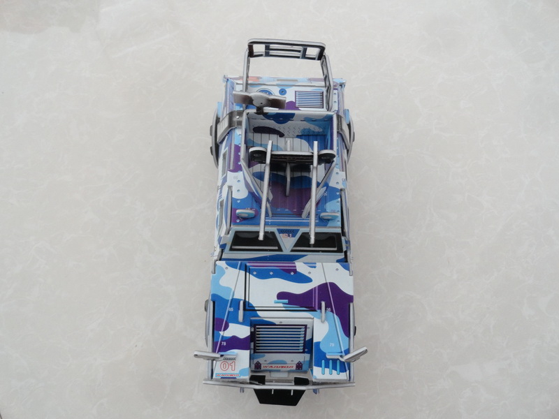 花了足足一个多小时,我才把零件全部安装上去了,一台非常漂亮的车也拼装好了。看着我拼装好的汽车,我给它取了一个名字,叫水陆两栖作战车。