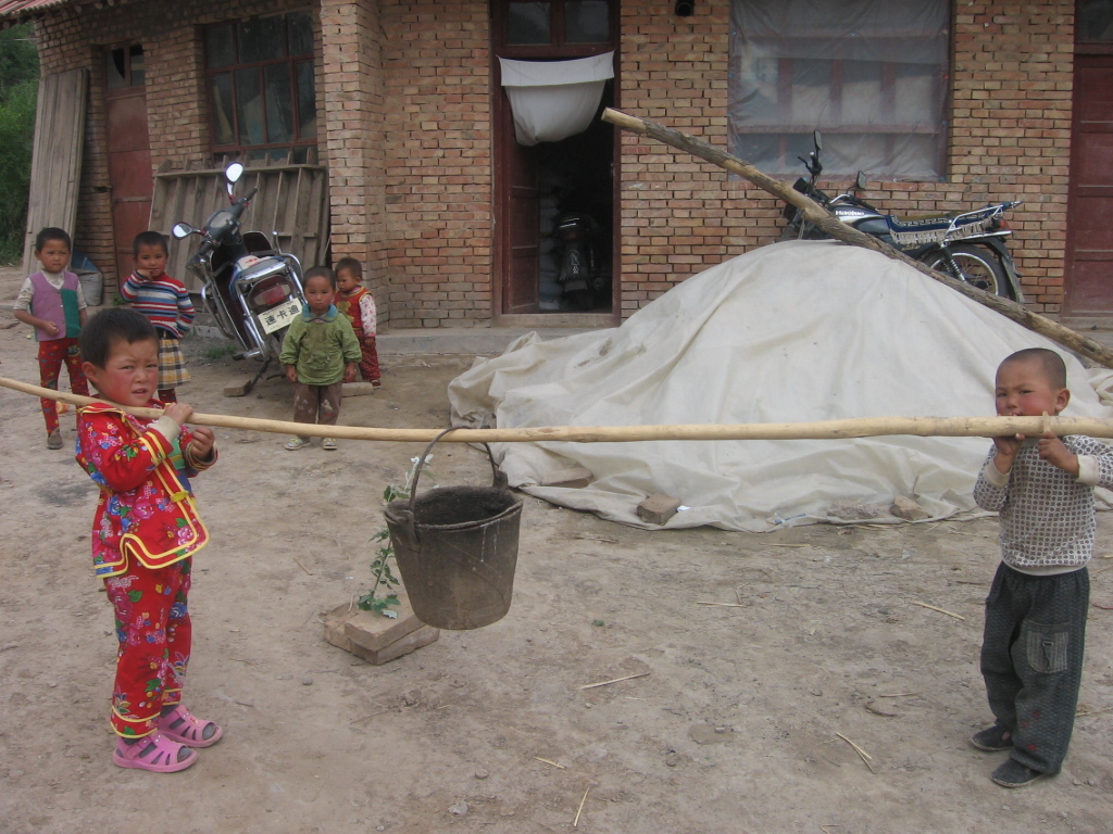 今天早上,大伯家的小伟和小丽在阳光的照射下,来到空地下植树。两只小鸟从他们头上疾驰飞过,好像要把这里添上一位新"伙伴"的好消息告诉这里的居民。