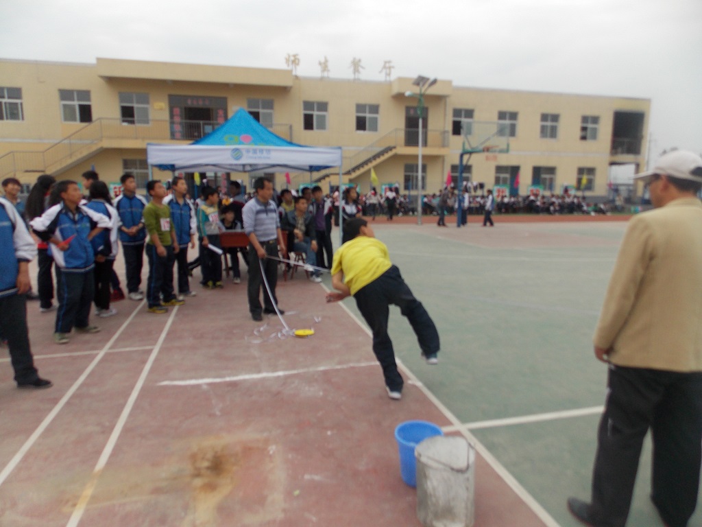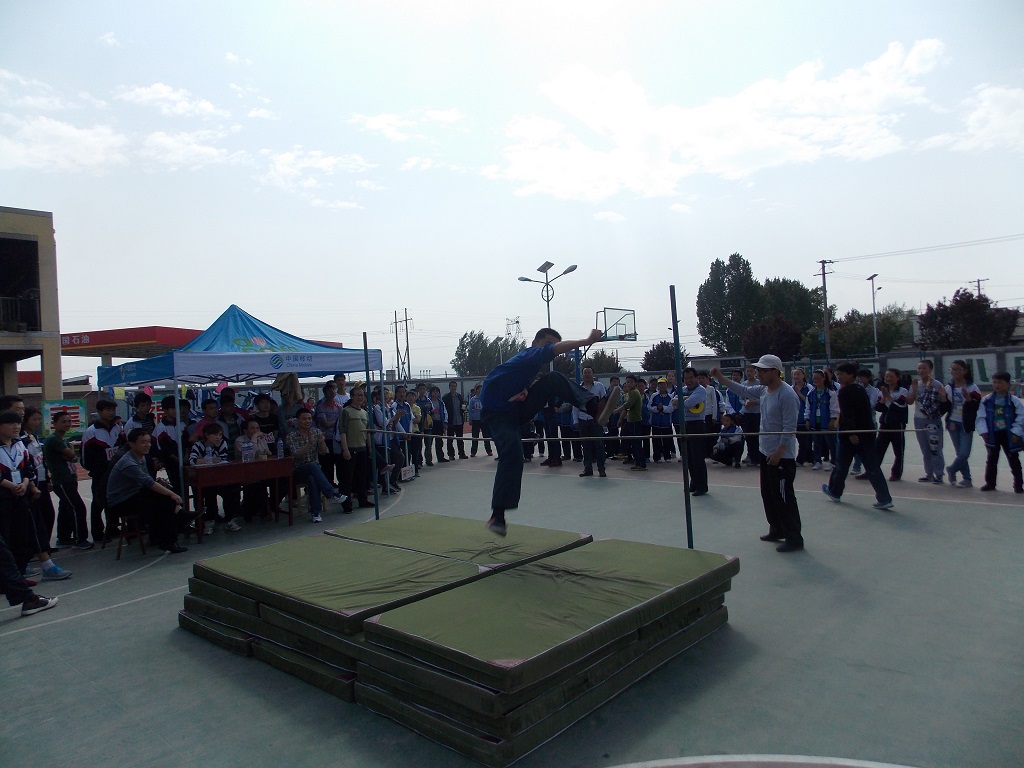 赛场上的同学们奋勇拼搏,赛场下的同学们也都大声呐喊助威,同学们听到这一声声发自肺腑的呐喊都更有信心了。嘿!别说,我们班的同学可都是精英级的人物哦,比赛成绩几乎让周围的同学看呆了,都不由自主的鼓起掌来,就连裁判老师也竖起大拇指,不停地赞扬。我们班的张亚宁,刘春阳,赵龙的跳高成绩都破了学校记录了,助跑,起跳,横杆一再升高,他们一次又一次的越过那道横杆,取得喜人的成绩,最高的跳到了1.34米呢!裁判老师也感叹道"青出于蓝胜于蓝"!