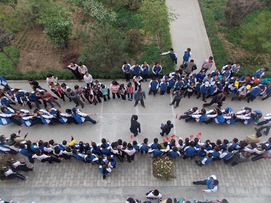 拔河比赛的同学们都是使了全身的劲,咬紧牙关,使劲往身后拽绳子,周围的加油声震耳欲聋,一阵高过一阵。每一次的胜利,都会换来同学们的欢呼跳跃,手都拍麻了,却不肯停下来……跑道上一道道飞奔的身影;每一道弧度都是优美的;每一颗汗滴都是付出的见证……