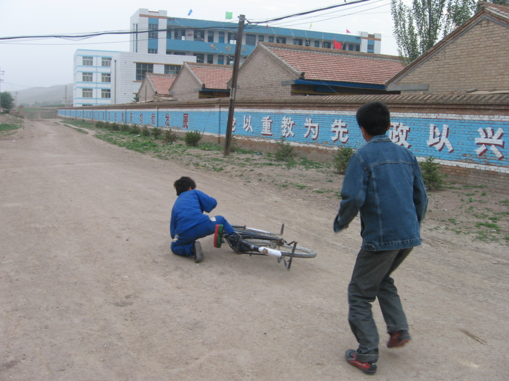 我骑在车上哥哥扶在后面,哥哥扶了我一会儿,就放手了,我开始还没想到,哥哥他会松手,我会头一看,哥哥没有扶,心一急,就跌倒了.