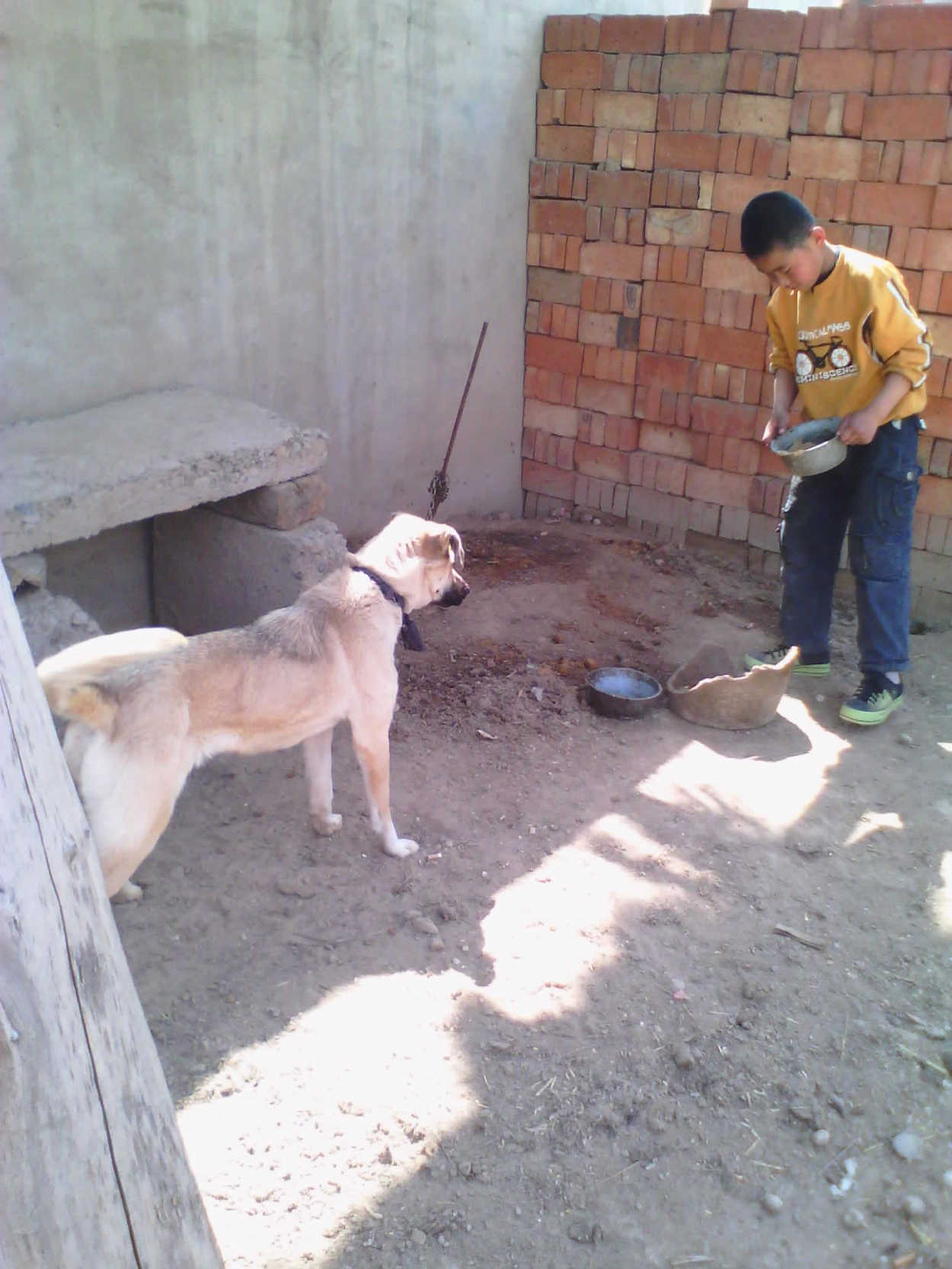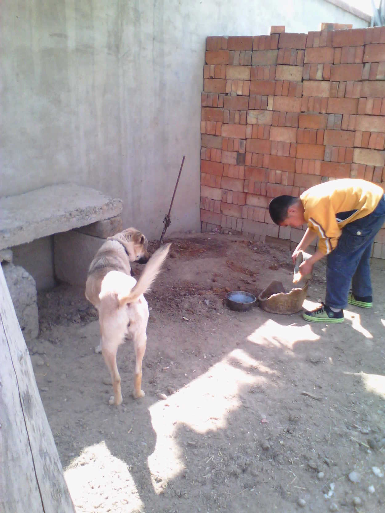 我给它给食它也不敢吃。过了几天它好像能听懂我说的话了,见了我不是"汪–汪"叫,就是摇尾巴,有时还向我频频点头,我高兴极了。