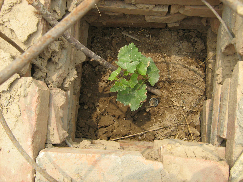 离厨房3米处,有一个用砖砌的小圈儿,那里面是这株小小的葡萄树,也许你会问,为什么种在这儿?如果葡萄树长大以后直接就可以爬到厨房的房顶,等到那时我们可以在底下乘凉,吃饭,那岂不是一件很惬意的事,愿那棵葡萄树快快长大,让小院变的更加美丽。