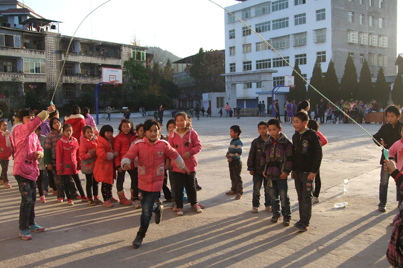 教室外的走廊上说笑声不绝于耳。跳绳的同学铆足了劲儿,想不断地超越自己;吹泡泡的同学将泡泡吹得像气球一样,比比看谁的最大;还有一伙跳皮筋的,左跳右点身轻如燕,让人羡慕不已。