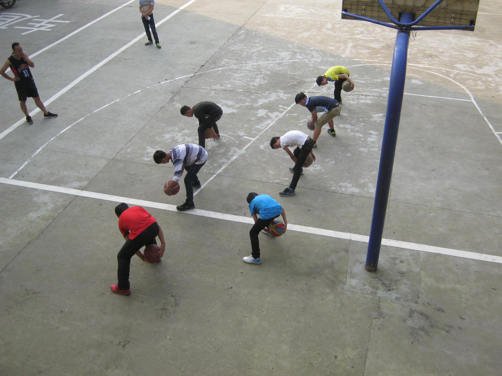 他要求我们每天下午课余时间,准时到操场上去练球,我们有十几个人,站成四五排,我站在最中间,去练球的第一天下午非常有趣,刘老师先教我们从练球开始,再是教我们如何进攻,如何防守这些基本功,刘老师教我们很投入,我们练得也很认真。