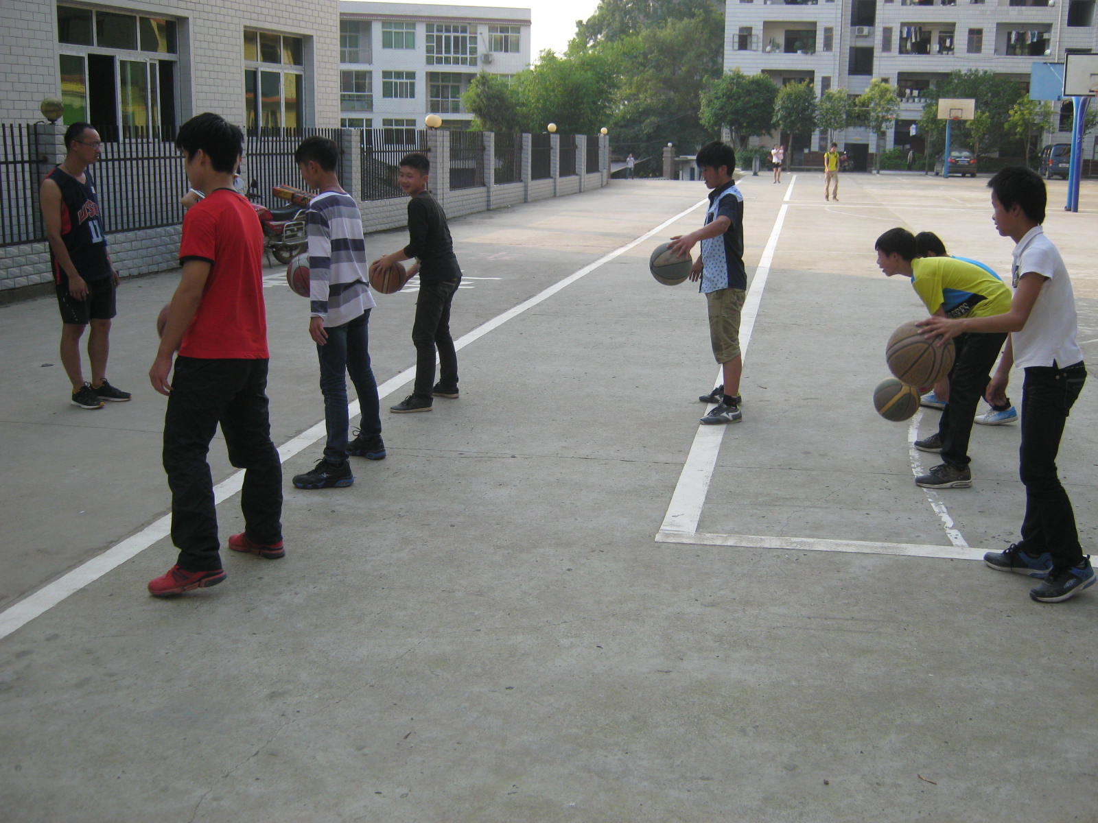 正是因为如此,所以我参加了学校组织的校队,也正是因为如此,我也有了一个篮球教练,我的教练他也是我的体育老师,我们都叫他刘老师。刘老师个子很高,身体也很强壮,鼻梁上架着一副眼镜。