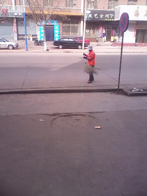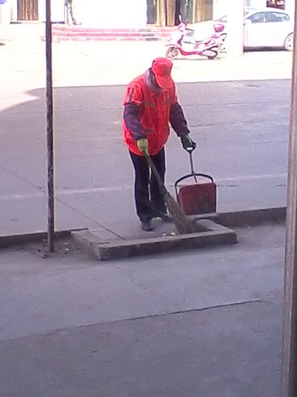 刷刷刷,刷刷刷……" "什么声音这么吵?这有点像扫地声。哦!可能是那个人……!"那人又印在我脑海里。在家门口,一个人引起了我的注意——是一个清洁工。她穿着一件灰色的汗衫,头戴一顶黄色的草帽,下身穿着一条黑色的布裤——很普通。但不知怎么的,我的眼睛渐渐对准了她的举动。