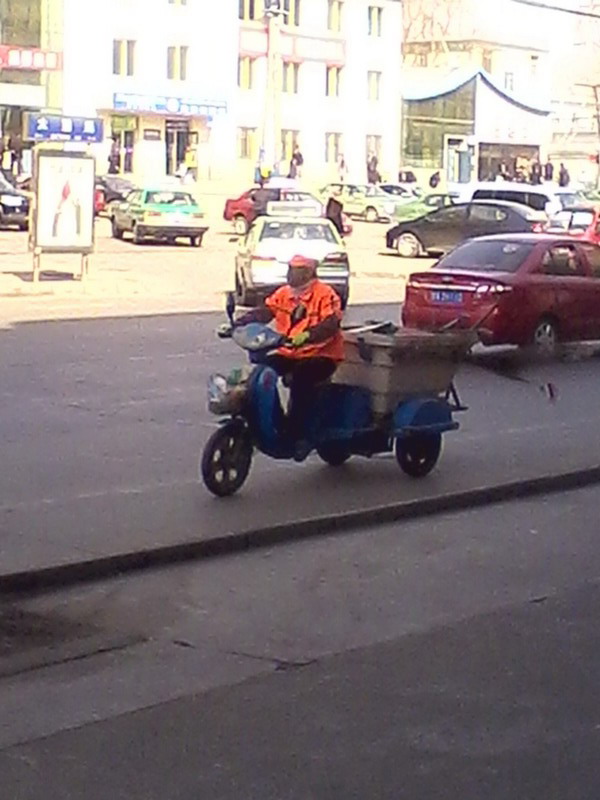 只见她手里拿着扫帚,另一只手拿着一个长柄灰钵子,正在专心致志地扫地。她先用扫帚把灰扫成一堆,再用灰钵子将灰倒入了身旁的红色垃圾车。接着,又拉着车到下一个地方继续扫 ……这似乎没有什么稀奇,但我,却深深地感动了——看她的脸上,灰黄的脸上滚动着一颗颗豆大的汗珠;再看看她身旁在的车,已经快要满了——她已经扫了很长时间、很多地方了。她目送着每一个行人和车辆,心里有说不出的满足。这时,来了三个十岁左右的男孩,他们正在吃冰棍。在路边,就是垃圾桶,他们却似乎没看见,随手将冰棍纸丢在地上。那个清洁工看见了,轻轻地摇了摇头,但没说话,悄悄地走过去,扫掉了冰棍纸,又回到了放垃圾车的地方。