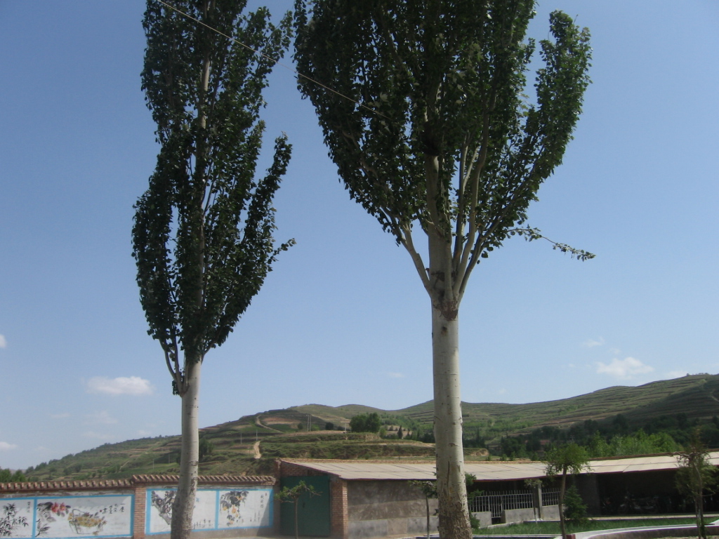 花园前面有几棵白杨树,春天一片片嫩绿的叶子长出来,像一个美丽的大花盆,夏天,树上的叶子青脆茂盛,绿得像刚发芽的麦苗。秋天树叶纷纷落下来,像天上下起了雪。冬天,树上落满了雪,像一朵大棉花。