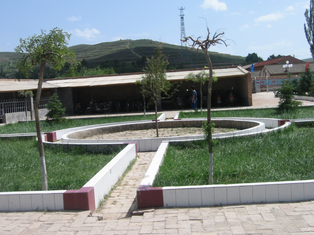 教学楼前面是一个美丽的大花园,四面有四个小草坪。中间围着一个大圆形的花园,里面种着几种花,有八瓣梅,季花等。有名字的,没名字的让人过目不忘,草坪里面的草更让人陶醉,那草绿得深沉。