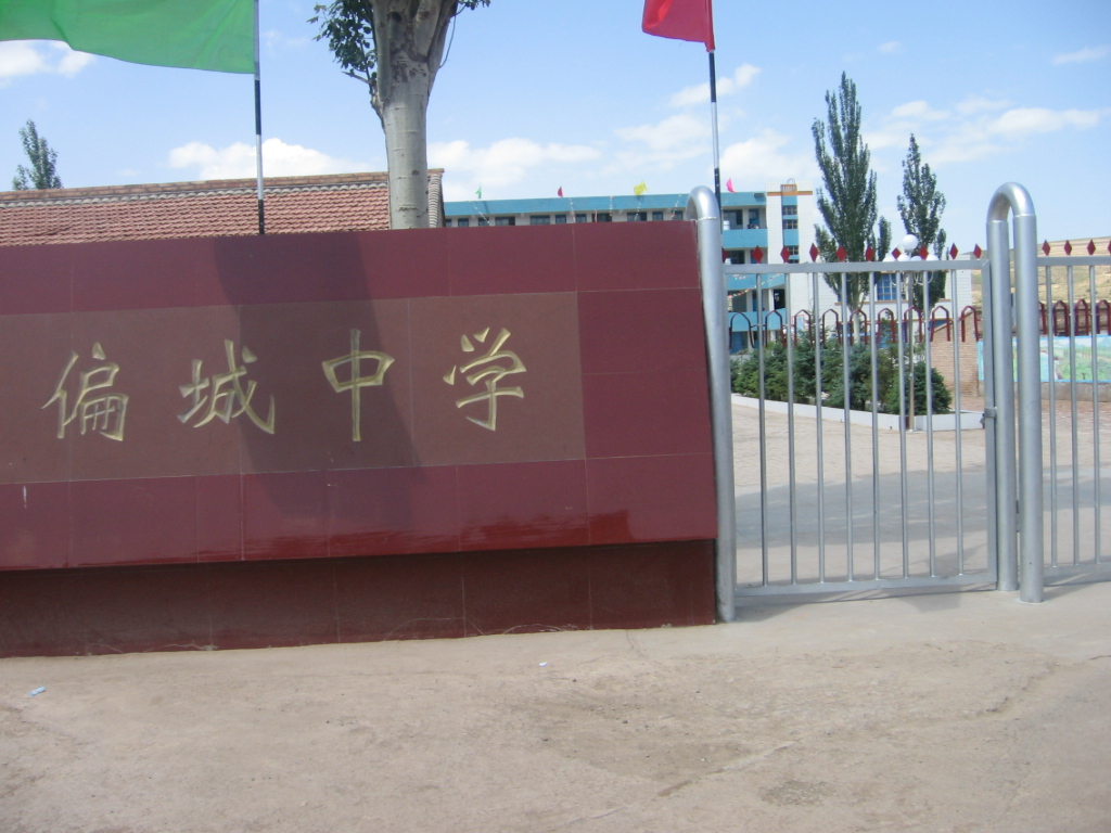 当每个人向校园走时,首先映入眼帘的是四个的黄字。:"偏城中学。"这四个字指导着我们,这是我们的校园偏城中学。