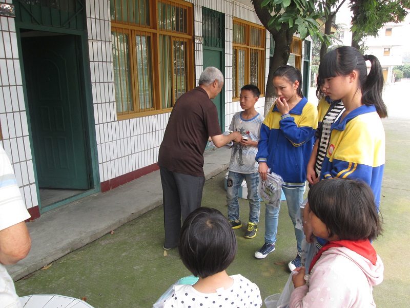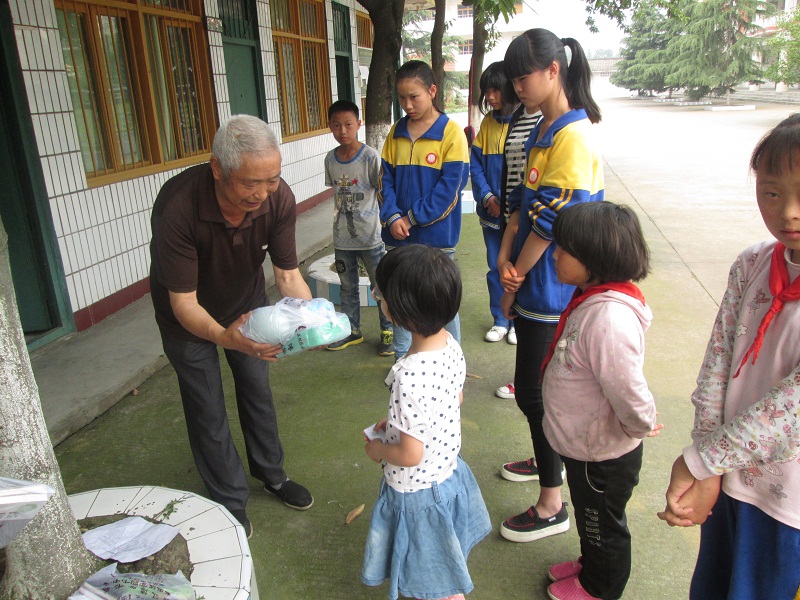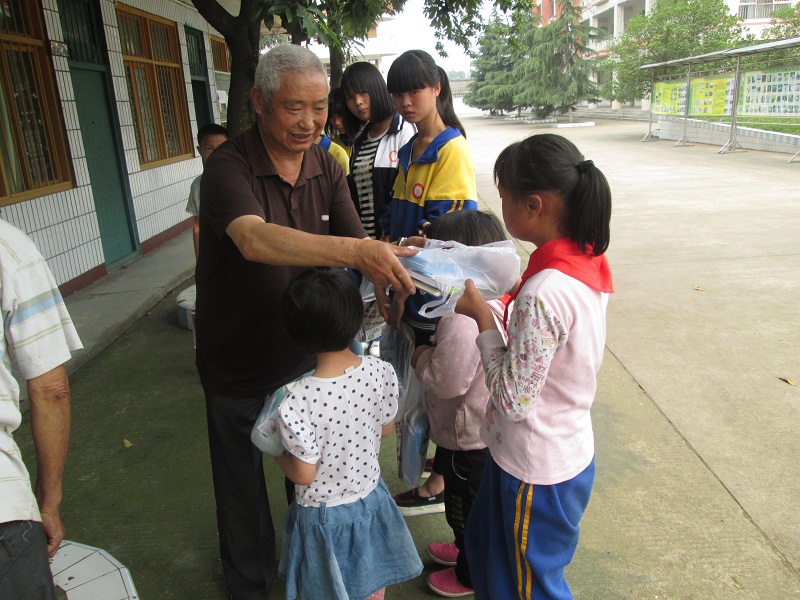 "六一"儿童节前一天,我们学校和我类似的贫困学生收到了一份特别的礼物。 给我们送礼物的是我们学校的退休老师黄爷爷。他来到学校,把我们召集起来,给我们送上节日的祝福,鼓励我们好好学习,快乐生活,他亲手将礼物送到我们每个人手中。