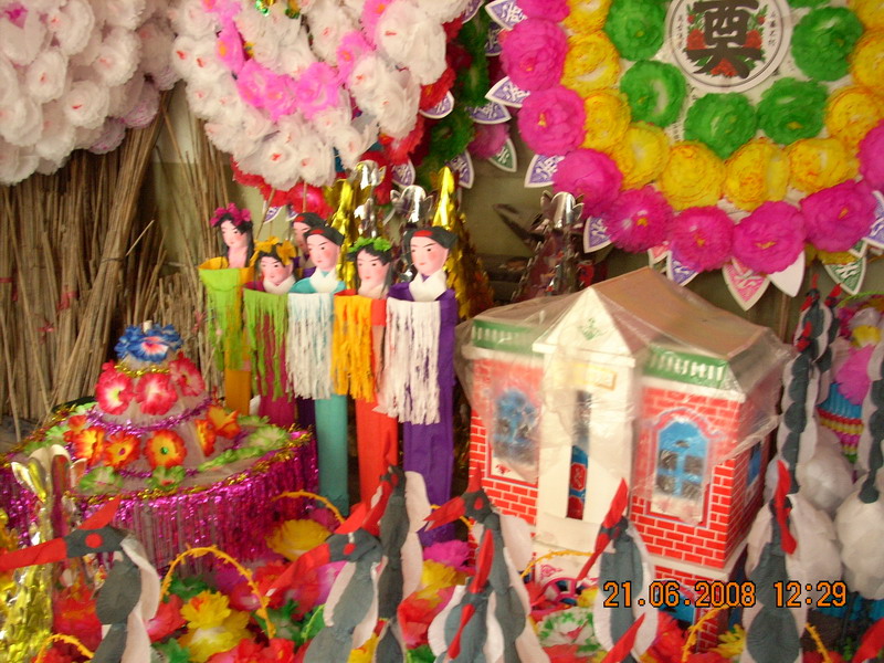和中国其他地区一样,中国西部地区的人们同样有对亡灵的特殊对待方式.除回族,维吾尔族等伊斯兰教教徒外,西部的人们通常会给亡灵各种花圈和纸叠品作为礼物,以此来表达对亡灵的某种感情.现将咱家乡艺人们做纸叠品的大略过程描述如下,希望它能给热爱中国民间艺术的人士些许材料......