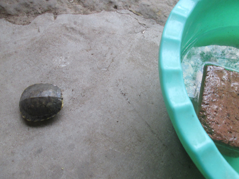 这时,小乌龟好像一个伟大常胜将军,高傲的挺起胸脯,伸长脖子说:"我是常胜将军,天下无敌,如有对手,必死无疑。"过了一会儿,小乌龟不再骄傲,而是安静的趴在那里,可怜巴巴的瞅着我。我一心软,又给它拿了肉,它吃完后,又变成了常胜将军,这时我才知道它用了借弱强求呀!