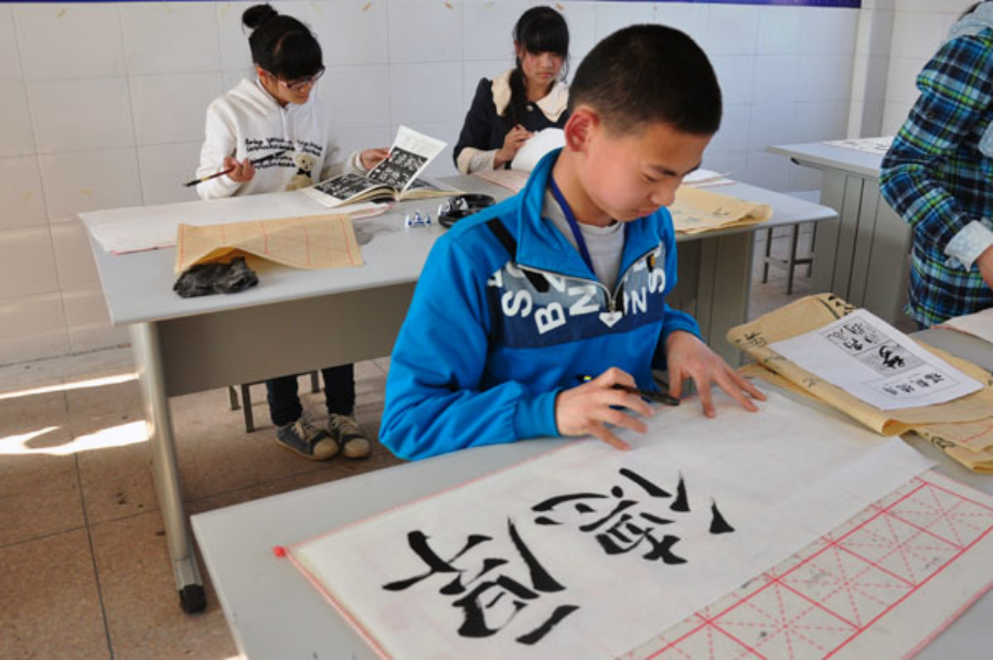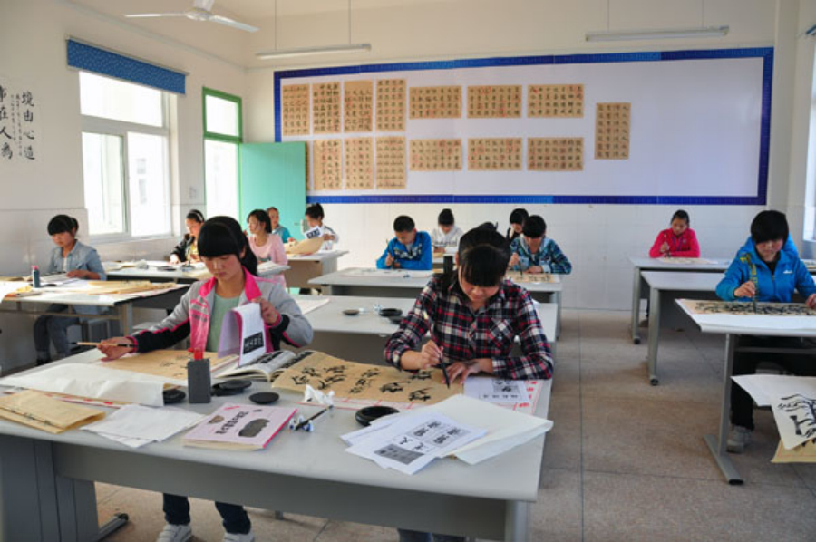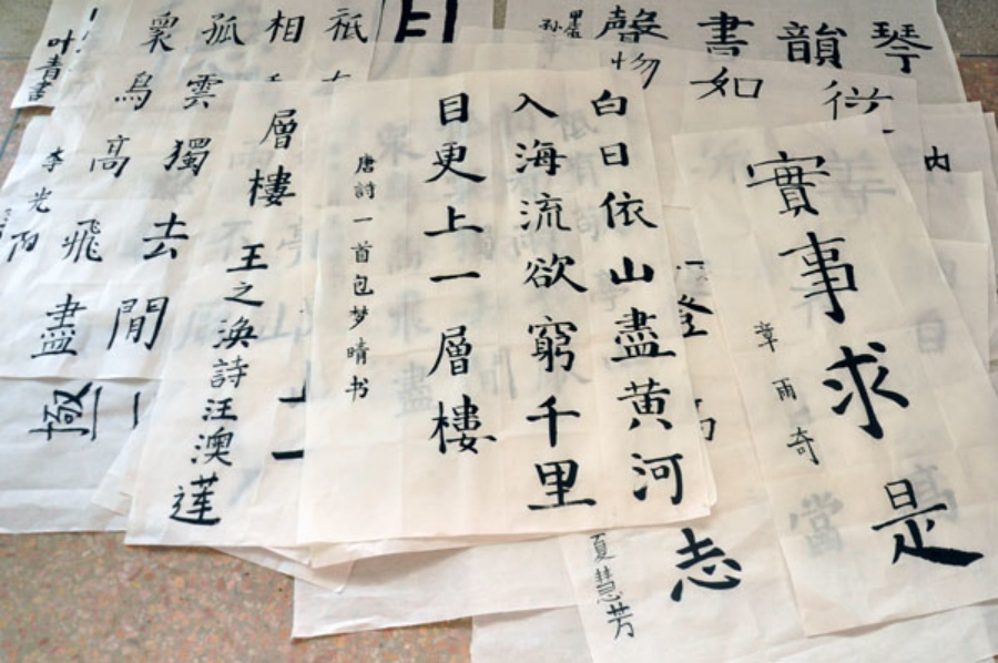 有端庄规矩的正楷,有飘逸清秀的行书,有古色古香的隶书,最后评委会评出了优秀作品并在书法教室展出。