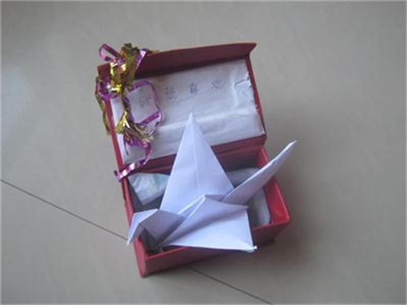 我用纸折了一个千纸鹤把放进礼盒里,又把我的成绩单一块放了进去。等妈妈回来,一块送给了妈妈。