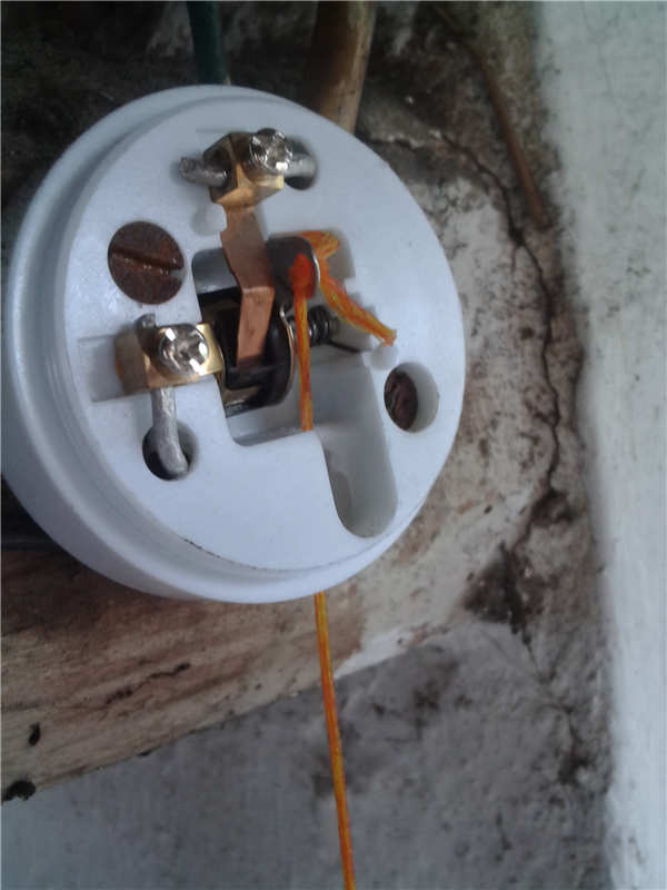这种灯泡一般都是有灯线的,很巧的是灯线也不知道为什么断了,所以也只有我来接,这个我不太懂,没有换灯泡那么简单,里面有一个铁片,铁片上有一个小洞,刚开始不知道那个洞是做什么的,原来是穿灯线的洞。