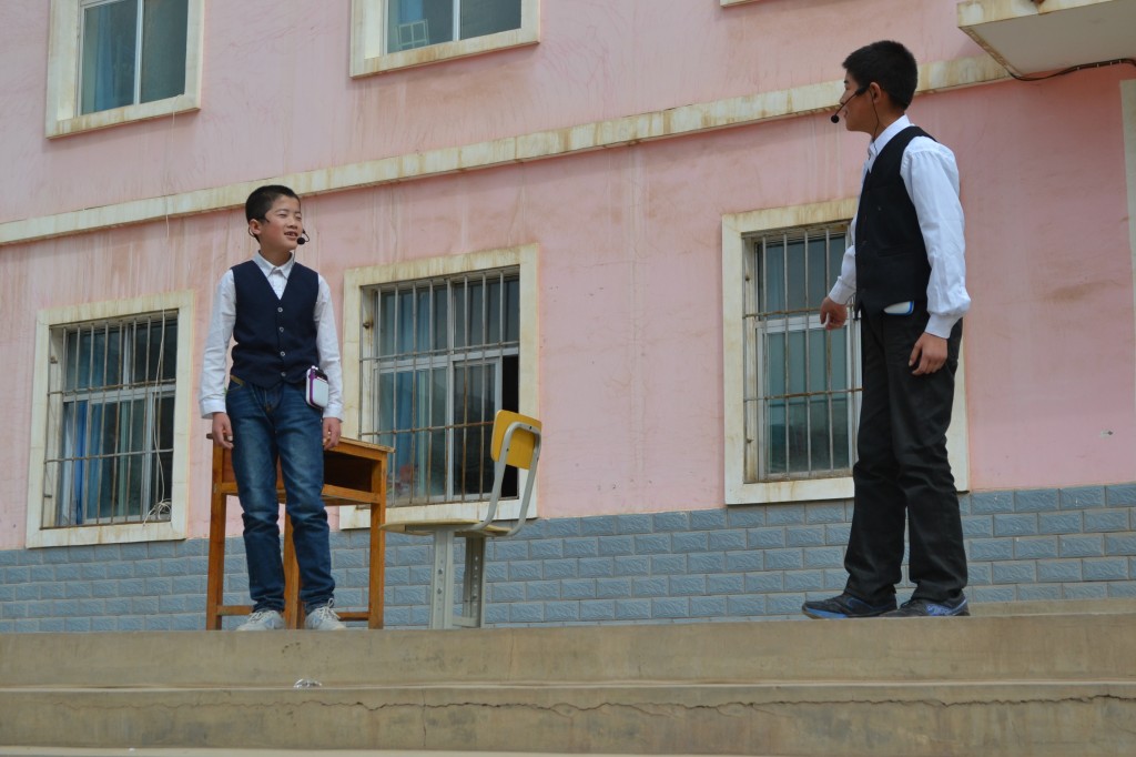 不知何时舞台中央站着十来个貌美如花的少女,身边的同学说这是八年级四班同学表演的舞蹈“大家一起来”,他们的舞蹈将我们带到了欢快的童年时光,她们在舞台上欢乐的跳舞,我们在台下欢呼呐喊,就连地里工作的农民也停下了工作,站在田间地头往这里眺望,那些美女们完全忘记了自己,完全融化在音乐中,一曲终了,她们的身影却还闪现在我们的眼中,使人忍不住拍手叫好。