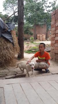 到家里那只小狗一直藏在桌子底下,我给它喂了点吃的,就去上学了。放学后我回到家里,那只小狗终于肯吃东西了。过了一个月后,那只小狗慢慢胆大了,还开始乱跑了。我发现它的毛很多,于是我就给它取了一个很好听的名字——小白。自从小白来到我们家,我的家一下热闹了起来。
