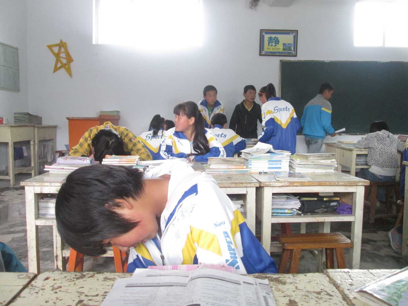 教室正前方有一块黑板,黑板上方一面五星红旗,五星红旗边上是八个大字"超越创新,勤学深思"。而我们,被分为六个组,每组都拼在一块,把班级分割成六个部分,仿佛是"六大门派"。