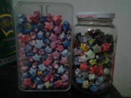 听说,只要做一万颗星星就可以完成一个愿望,所以我就在一直做星星,只为完成我一个小小的愿望、、、、、、我已经做了五百颗了。
