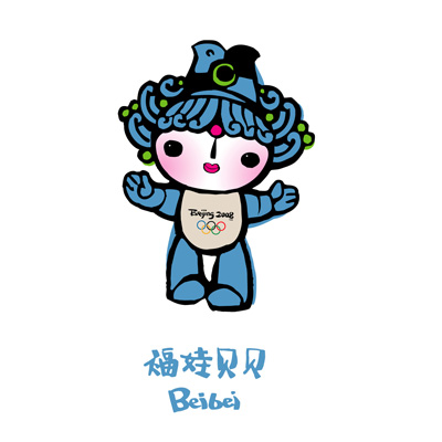贝贝的头部纹饰使用了中国新 石器时代的鱼纹图案。贝贝温柔纯洁,是水上运动的高手,和奥林匹克五环中的蓝环相互辉映。