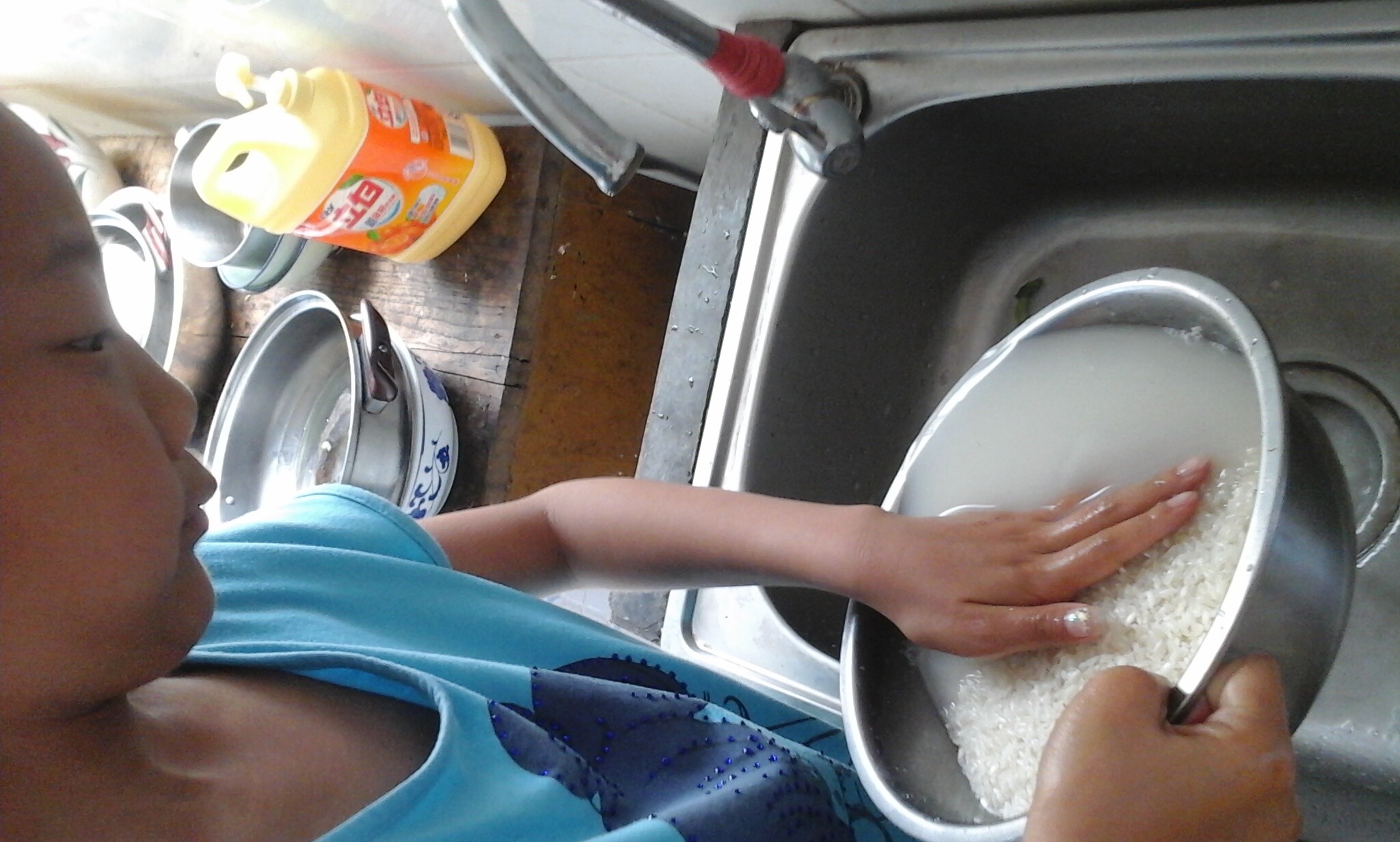 洗米就是淘米,没有什么稀奇的。可是我这次是洗米洗得很累。