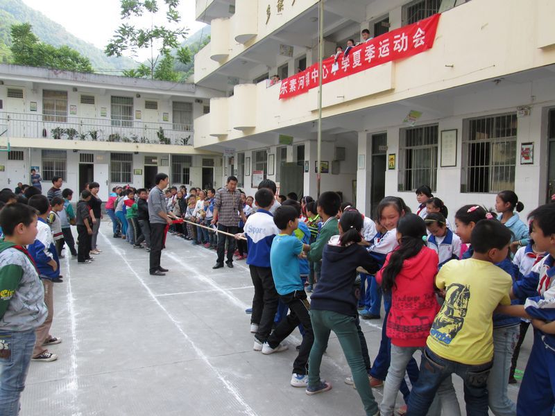 最激烈的场面要数下午高段组举行的拔河比赛。比赛双方是五年级对六年级。
