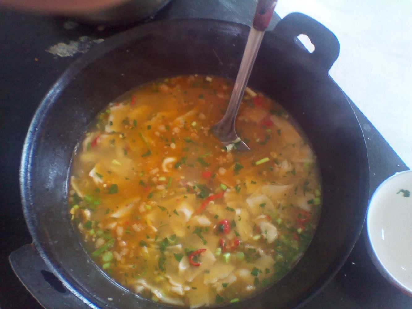 当然你可以在面中加入一些佐料,因为我们是农村人,所以土豆对我们来说是最好的蔬菜。把土豆切成麻将大小,然后再过中倒油,把切好的土豆.蒜苗和葱一起到入锅中,在国中翻炒一会后,加入调料,再倒点水,煮一会就熟了。把土豆用碗盛起来,然后在锅中倒入水,等水开之后,把事先切好的面弄成小正方形丢入锅中。等全部下完之后,焖煮一会之后把土豆等一些菜倒入锅中,加入一些调料让后尝一尝味道就可以开吃了。