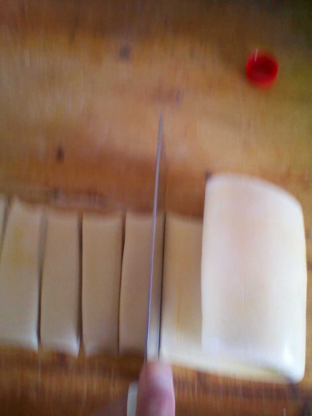 面片子的做法其实很简单,首先你要把面和好,然后使劲的搓面,知道面的表面有了光泽以后,你便可以用擀面杖把面擀好,不过你可得注意了,擀好以后的面不能太厚也不能太薄,然后在上面撒一点油,再把油均匀的抹在面上,最后把面用切刀尺子一样的宽度,然后把面放在盆子里晾一会。