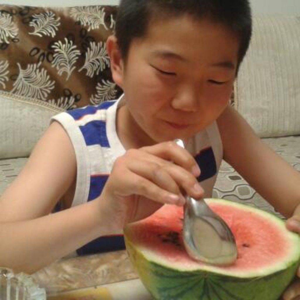 弟弟还是一个小馋猫呢!这几天来了几个卖瓜的,妈妈买了几个又甜又大的白兰瓜和西瓜。妈妈把一个西瓜分成两半,我一半,他一半,但是全进了他的肚子,他让妈妈再切一个给他吃,妈妈不答应。妈妈说:“西瓜吃多了会闹肚子哦!”但是他没有善罢甘休,那一双圆溜溜的眼睛咕噜咕噜地转动了起来,忽然,他对妈妈说:“小姨,昨天我去隔壁阿姨家玩时,她说,让你今天去她家,她有事跟你说。”妈妈突然想起前几天,隔壁阿姨让她帮忙锄草的事,就摸着弟弟的头和蔼地说:“和姐姐在家玩,不许捣乱哦。”“保证完成任务!”弟弟挺直腰,胸有成竹的说。妈妈刚走,狡猾的弟弟又切开一个西瓜“消灭”了,他抹抹嘴巴,欢快的出去玩了。