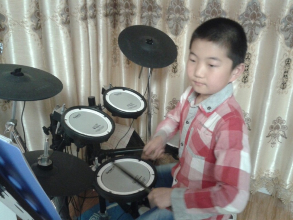 不过,弟弟可非常有音乐天赋呢!每当电视中传来悦耳的歌声时,他总会随着节奏哼唱,他的乐感可真好,很少跑调,这可能和他平时打架子鼓有关。表弟的架子鼓打得不错,还经常参加各种演出呢!