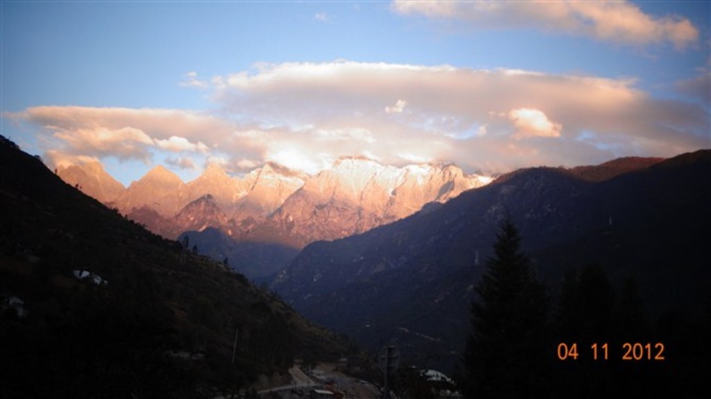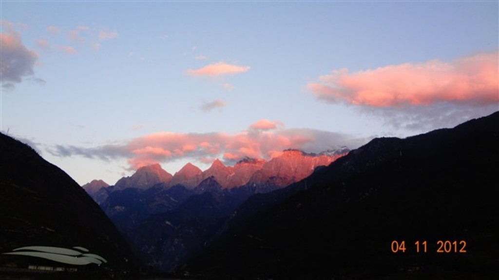 面对眼前的美景,我赶紧把它拍了下来,我想这是最美好的记忆。不一会儿云朵上的金环不见了,云朵的色彩也黯淡了,大约十秒钟太阳下山了,云朵恢复了往常的颜色,其前后不到一分钟的时间。