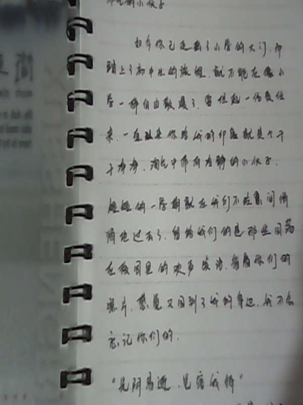 当我看到这个笔记本的封面时,彻底被它吸引住了,……两年前的回忆立刻浮现在了我的眼前。那时,我还是一个六年级小学生。这个笔记本就是在我六年级毕业时我的老师送给我的。