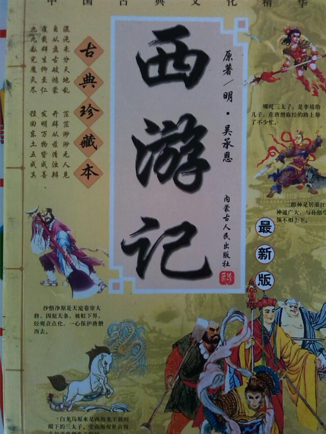 我们中国,孕育着许许多多的经典文明。最为著名的便要属四大名著了。 由吴承恩编写的《西游记》我国古代第一篇浪漫主义神魔小说。全书讲述了唐僧师徒四人历经八十一难,最终到达西天取得真经的故事。作者笔下的唐僧师徒形象鲜明,个性突出,活灵活现,故事情节更是惊险刺激。可见,在祖国的摇篮下,多少文人学士正在崛起!