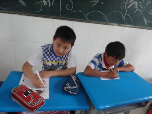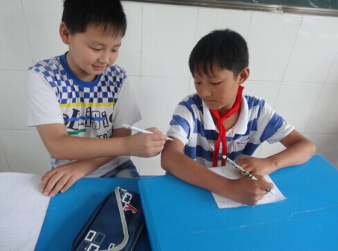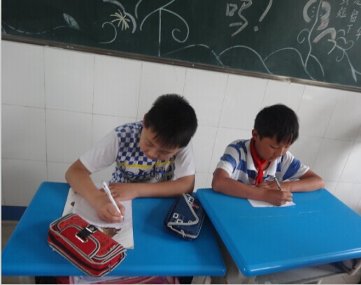 等我笑完后他们居然又开始大战了,当杨老师走到他们身边时,两个人互相瞪了一眼,就乖乖地练字了。