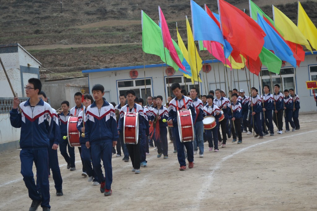 首先鼓乐队的同学们出场了,他们身穿代表马坡中学标致的校服,排着整齐的队伍,打着鼓,气魄雄伟;后面就是运动员了,他们昂首挺胸,步伐坚定,高呼着口号,给人以一种拼搏向上的感觉。