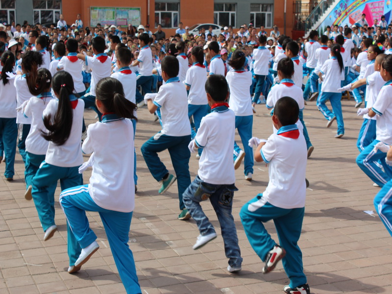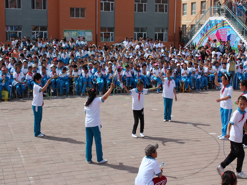 颁奖活动完了是表演节目。首先是"校园集体舞"。开场他们跳的是兔子舞。瞧!他们舞姿是那么柔美,那么悠然。他们跳的真像一只只小白兔。中间的舞蹈更是那么的放松、无拘无束。退场时骑马舞,这个舞让我最兴奋,仿佛我也是他们其中的一员。在夏日的照射下他们的舞姿更柔美,更悠然,更自由。